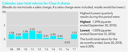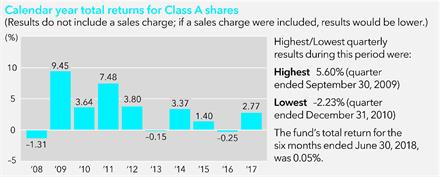 Investment results The following bar chart shows how the funds investment results have varied from year to year, and the following table shows how the funds average annual total returns for various periods compare with a broad measure of securities market results and other applicable measures of market results. This information provides some indication of the risks of investing in the fund. The Lipper Short Municipal Debt Funds Average includes the fund and other funds that disclose investment objectives and/or strategies reasonably comparable to those of the fund. The results below and on the following page for certain periods shown reflect the operation of the fund as a money market fund prior to its conversion on August 7, 2009 to a short-term tax-exempt bond fund. Accordingly, results for such periods are not representative of the funds results had the fund been operated as a short-term tax-exempt bond fund during the entire period. Past investment results (before and after taxes) are not predictive of future investment results. Updated information on the funds investment results can be obtained by visiting americanfunds.com.