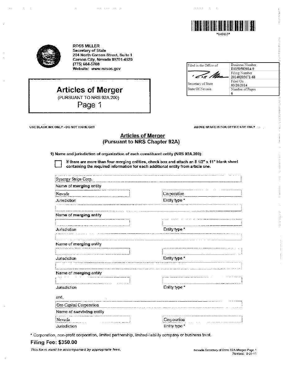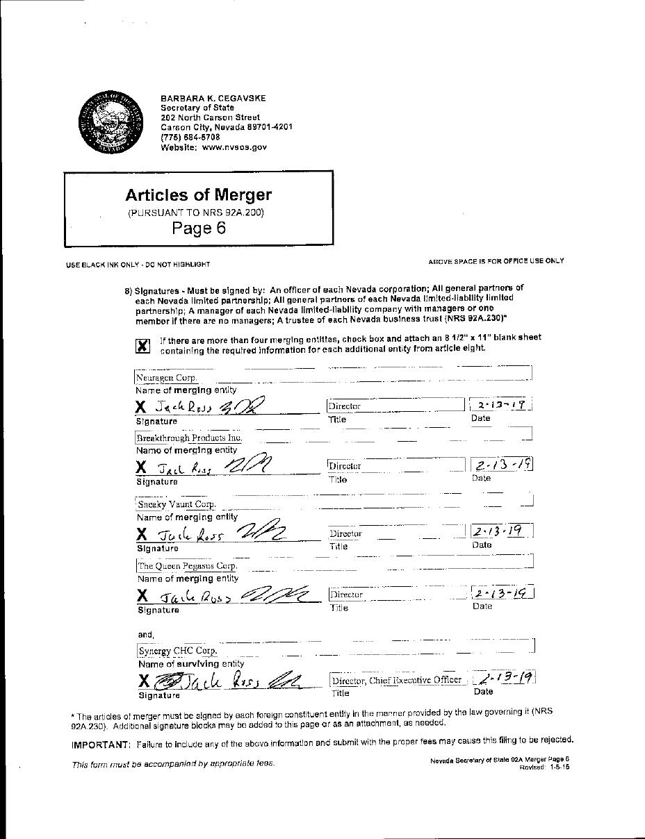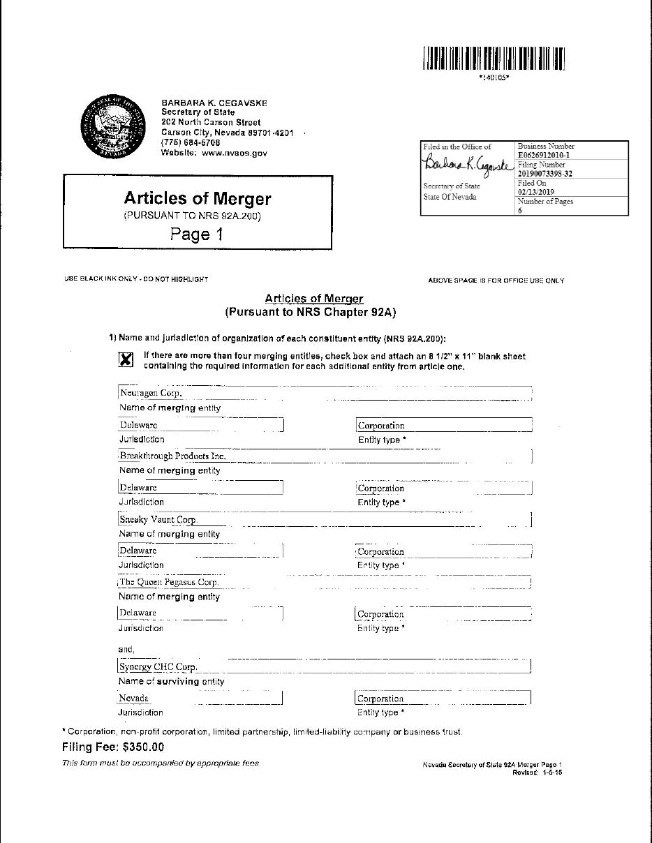Subsequent to December 31, 2020, the Company has entered into an agreement to acquire the outstanding 50% of Hand MD Corp. whereby Synergy will become the 100% owner. The consideration of $1,700,000 will be disbursed as follows: $500,000 within 10 business days of the execution of the agreement, $400,000 on or before the six month anniversary of the agreement, $400,000 on or before the twelve month anniversary of the agreement and $400,000 on or before the eighteen month anniversary of the agreement. The first payment of $500,000 was made in July 2021.