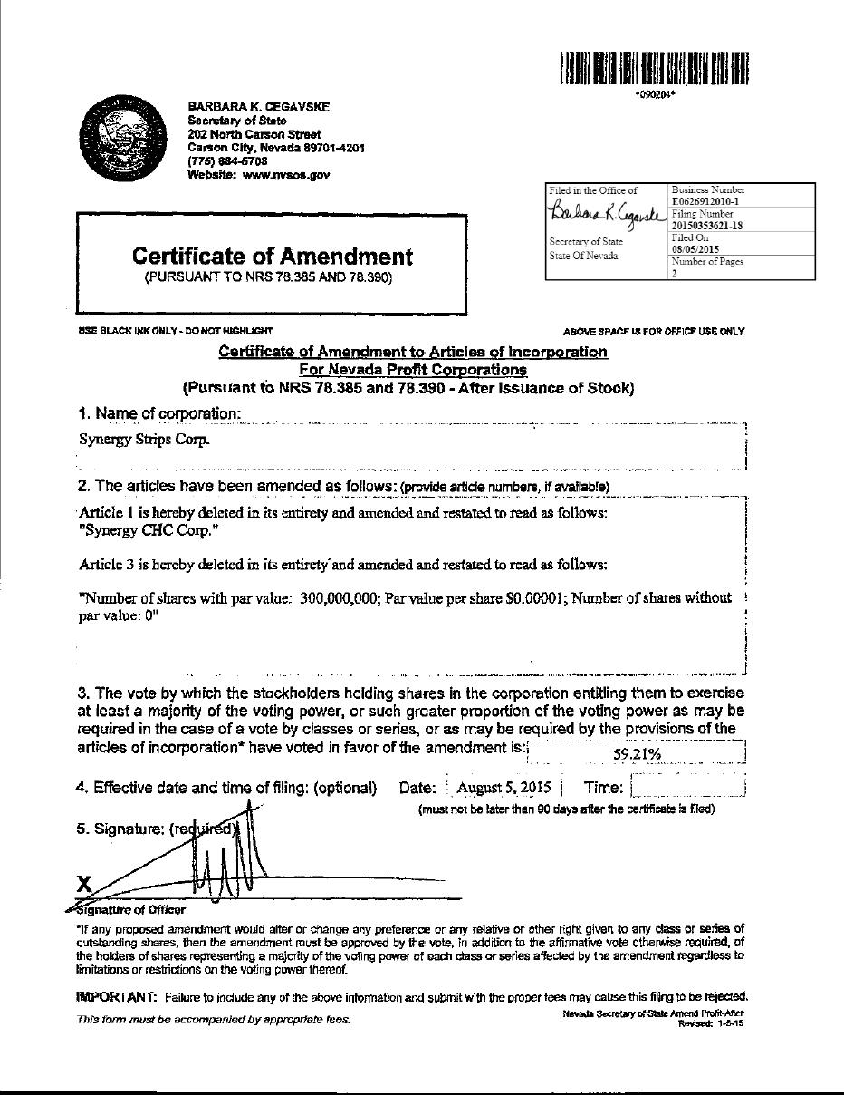 Synergy CHC Corp. is offering shares of our common stock, par value $0.00001 per share. We currently estimate that the initial public offering price of our common stock will be between $ and $ .