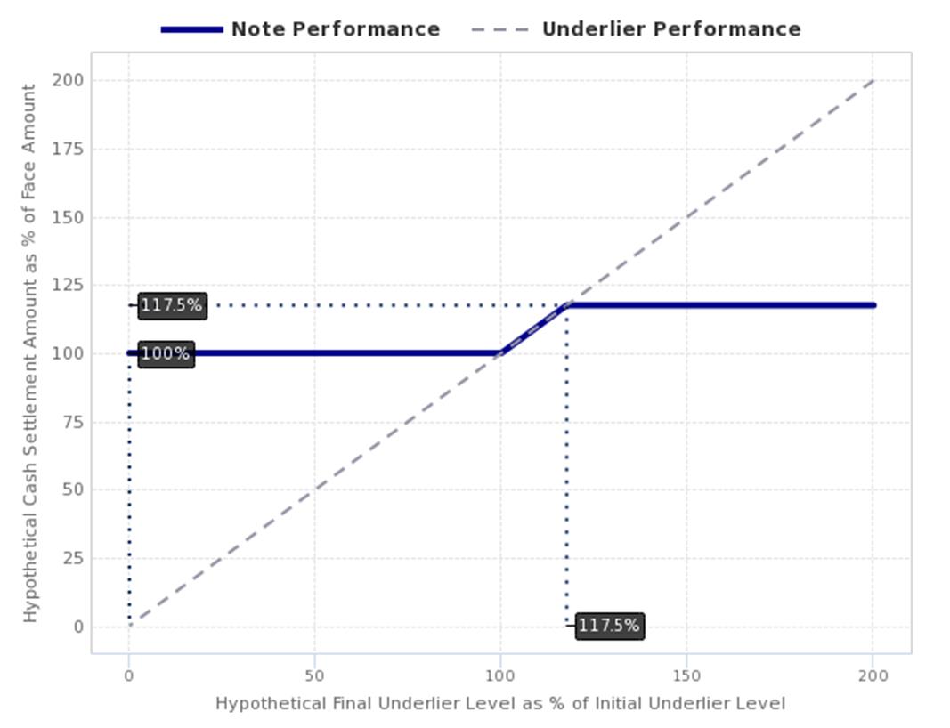 If the final index level on the determination date is greater than the initial index level (set on the trade date), the return on your notes will be positive and will equal the index return, subject to the maximum settlement amount of $1,175 for each $1,000 face amount of your notes. If the final index level is equal to or less than the initial index level, you will receive the face amount of your notes.