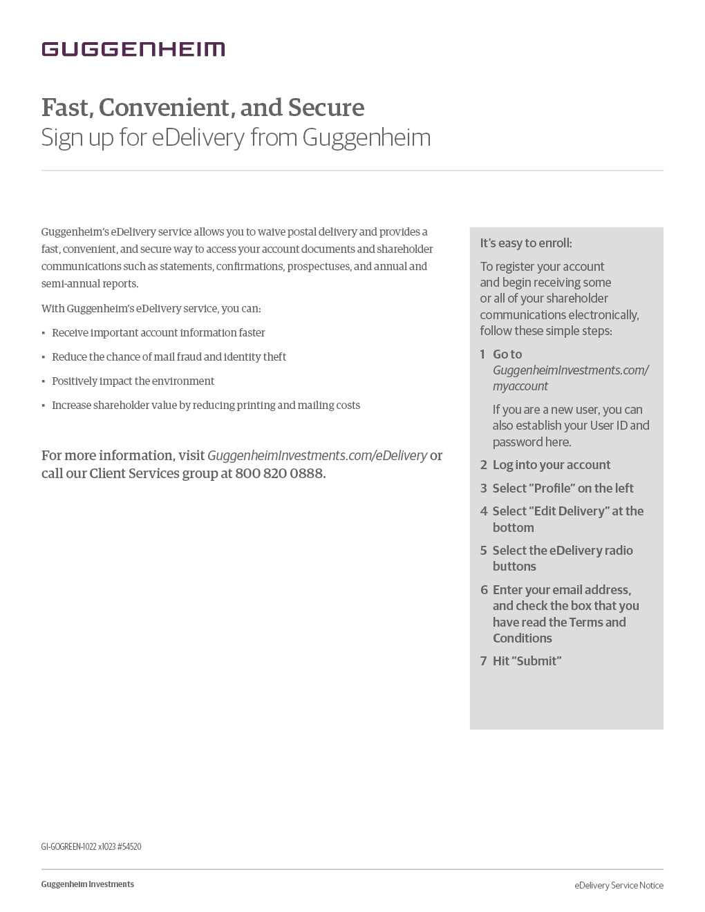 We reserve the right to modify this policy at any time and will inform you promptly of material changes. You may access our privacy policy from our web site at www.guggenheiminvestments.com. Should you have any questions regarding our privacy policy, contact us by email at CorporateDataPrivacy@GuggenheimPartners.com.