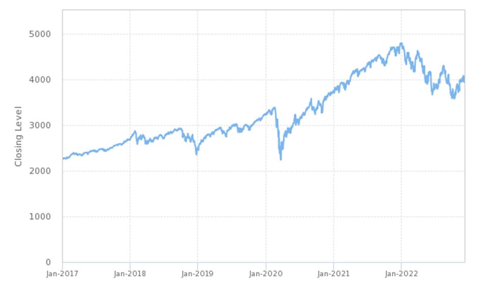 The graph below shows the daily historical closing levels of the underlier from January 1, 2017 through December 7, 2022. As a result, the following graph does not reflect the global financial crisis which began in 2008, which had a materially negative impact on the price of most equity securities and, as a result, the level of most equity indices. We obtained the levels in the graph below from Bloomberg Financial Services, without independent verification.