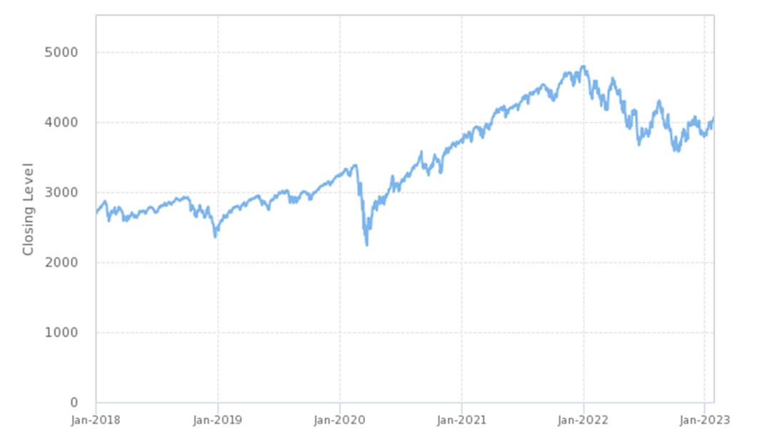 The graph below shows the daily historical closing levels of the underlier from January 1, 2018 through January 26, 2023. As a result, the following graph does not reflect the global financial crisis which began in 2008, which had a materially negative impact on the price of most equity securities and, as a result, the level of most equity indices. We obtained the closing levels in the graph below from Bloomberg Financial Services, without independent verification.