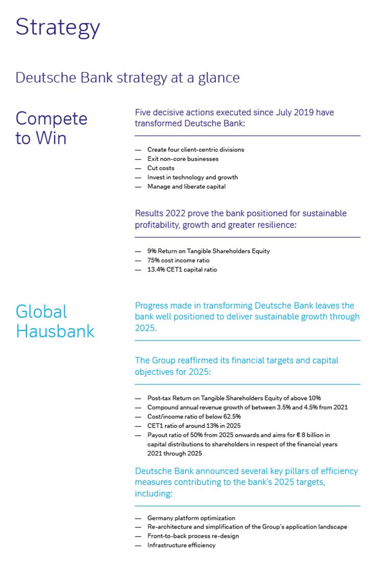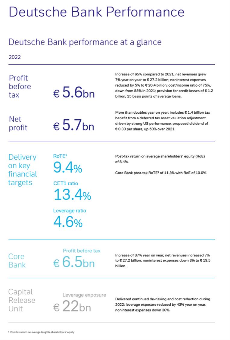 2Starting with the first quarter of 2022, information is presented as reported as the fully loaded definition has been eliminated as resulting only in an immaterial difference; comparative information for earlier periods is unchanged and based on Deutsche Banks earlier fully loaded definition.