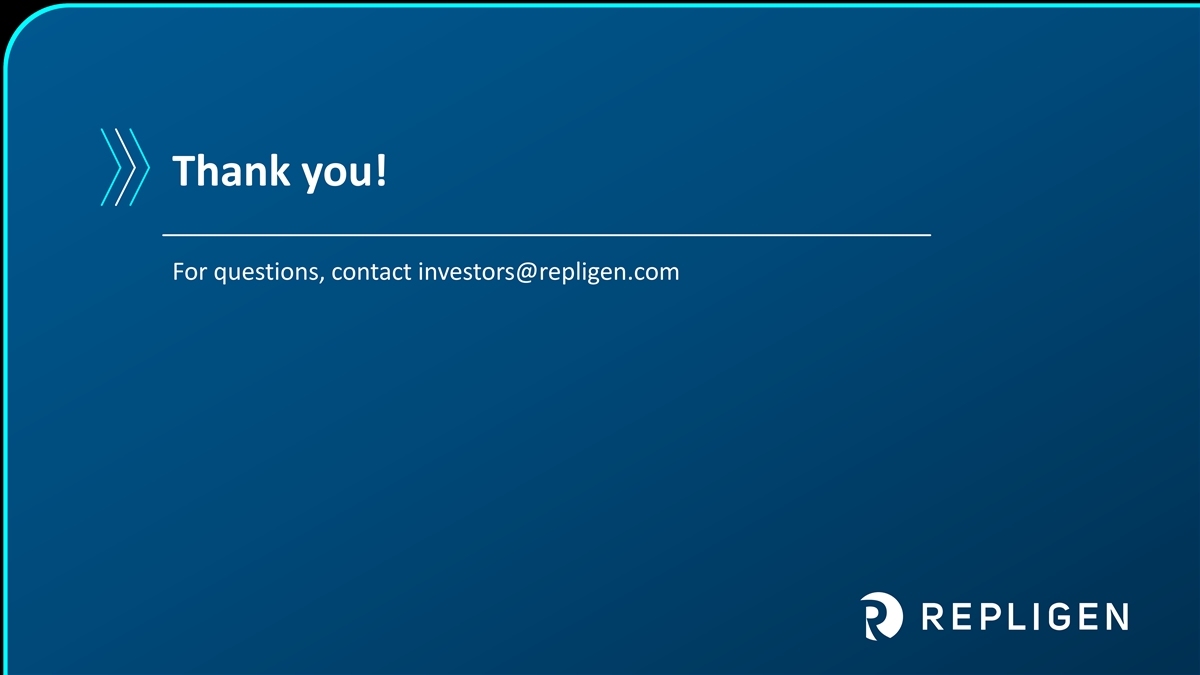Thank you! For questions, contact investors@repligen.com 7