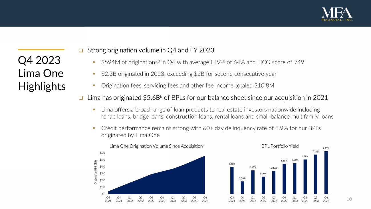 9 □ Loan delinquencies and loan - to - value (LTV) ratios remain low ▪ We continue to benefit from accumulated home price appreciation and principal paydowns ▪ 60+ day delinquency rate on Purchased Performing Loans 14 rose to 3.8% □ Realized losses have been rare due to low LTVs, strong underwriting and proactive asset management ▪ Total loan portfolio LTV was 59% at Dec. 31 15 ▪ Only 3.3% of our Purchased Performing Loans (as measured by UPB) have LTV ratios above 80% □ Geographically diverse loan portfolio Q4 2023 Credit Highlights 32% 25% Legacy RPL/NPL Legacy RPL/NPL 16 60+ day delinquency Q4 2022 Q4 2023 3.1% 3.8% Purchased Performing Purchased Performing 60+ day delinquency Q4 2022 Q4 2023 56% 64% 54% 59% Loan Portfolio LTV 15 Q4 2023 CA 27% FL 13% TX 7% NY 5% GA 5% NJ 3% Other 40% Loan Portfolio State Concentration 17 - $1B $2B $3B $4B <60% 60-70% 70-80% 80-90% 90-100% >100 % Loan Portfolio LTV Distribution Purchased Performing LTV Legacy RPL/NPL LTV