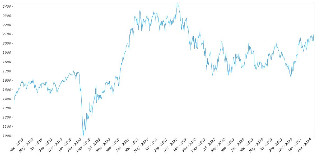 The following graph sets forth the daily historical performance of the RTY in the period from January 2, 2019 through the pricing date. We obtained this historical data from Bloomberg L.P. We have not independently verified the accuracy or completeness of the information obtained from Bloomberg L.P. On the pricing date, the closing level of the RTY was 2,071.998.