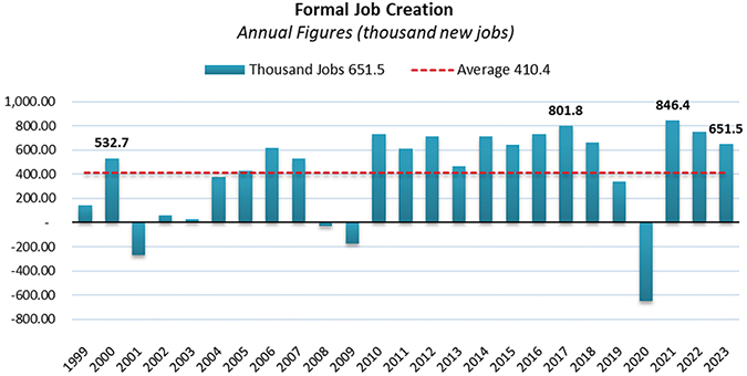 the (“GDP”) Gross Domestic Product. (“INEGI”) National Institute of Statistics and Geography reports 650,000 new formal workers in 2023 compared to the 410,000 24-year average annual new formal workers (the prior six Presidential terms)