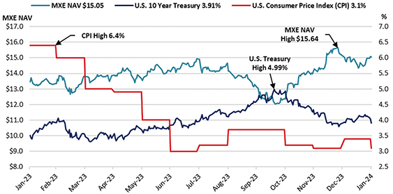 closed-end fund, which fluctuates throughout the day. The common share market price may differ from the Fund’s Net Asset Value; shares of a closed-end fund may trade at a premium to (higher than) or a discount to (lower than) NAV. The