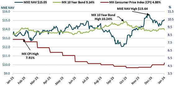 MSCI-Mexico Net Total Return Index: The Morgan Stanley Capital International Index Mexico is a free float capitalization-weighted index that tracks the Mexican Stock Market. One cannot invest