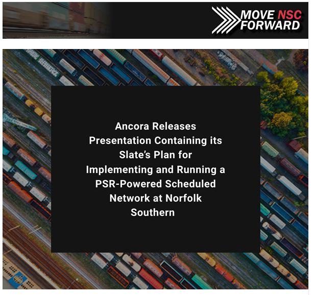 Ancora Releases Presentation Containing its Slate’s Plan for Implementing and Running a PSR-Powered Scheduled Network at Norfolk Southern