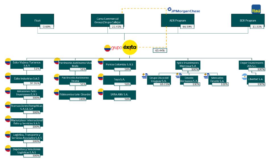 Except where the context otherwise requires, in this annual report, “Éxito” refers to Almacenes Éxito S.A., a corporation (sociedad anónima) incorporated under the laws of Colombia, and “Éxito Group,” the “Company,” “we,” “our,” “us” or like terms refer to Éxito and its consolidated subsidiaries. The ADSs are evidenced by American Depositary Receipts, or ADRs, issued by J.P. Morgan Chase Bank N.A., the depositary bank for the ADSs. All references to “pesos”, “COP” or “COP $” are to the Colombian pesos, the official currency of Colombia.