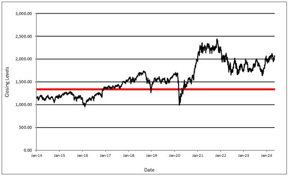1,338.856, which is 65% of the Initial Level