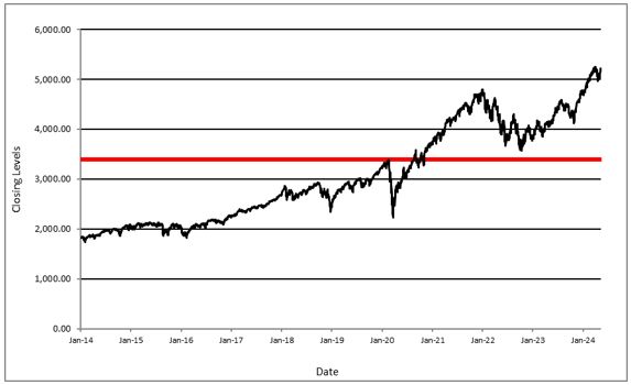 3,394.74, which is 65% of the Initial Level