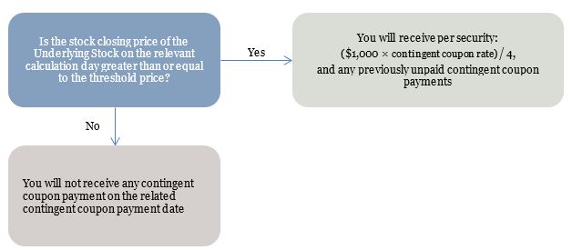 threshold price, the securities will pay the contingent coupon payment due for that subsequent calculation day plus all previously unpaid contingent coupon payments (without interest on amounts previously unpaid). If the stock closing