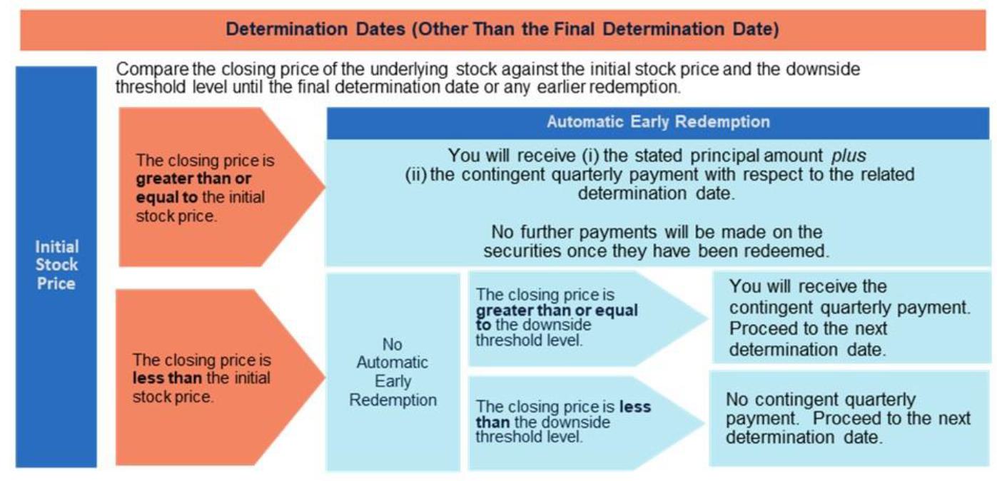 *The early redemption payment includes the unpaid contingent quarterly payment with respect to the determination date on which the closing price of the underlying stock is greater than or equal to the initial stock price and the securities are redeemed as a result.