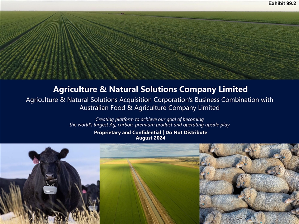 Exhibit 99.2 Agriculture & Natural Solutions Company Limited Agriculture & Natural Solutions Acquisition Corporation’s Business Combination with Australian Food & Agriculture Company Limited Creating platform to achieve our goal of becoming the world’s largest Ag, carbon, premium product and operating upside play Proprietary and Confidential | Do Not Distribute August 2024 1