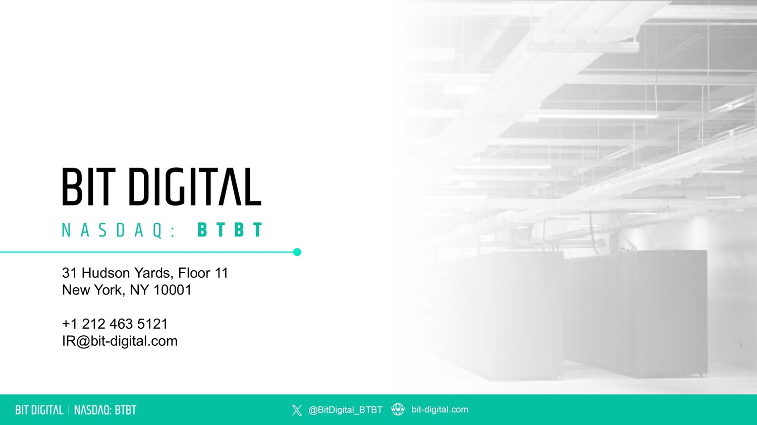 31 Hudson Yards, Floor 11 New York, NY 10001 +1 212 463 5121 IR@bit - digital.com