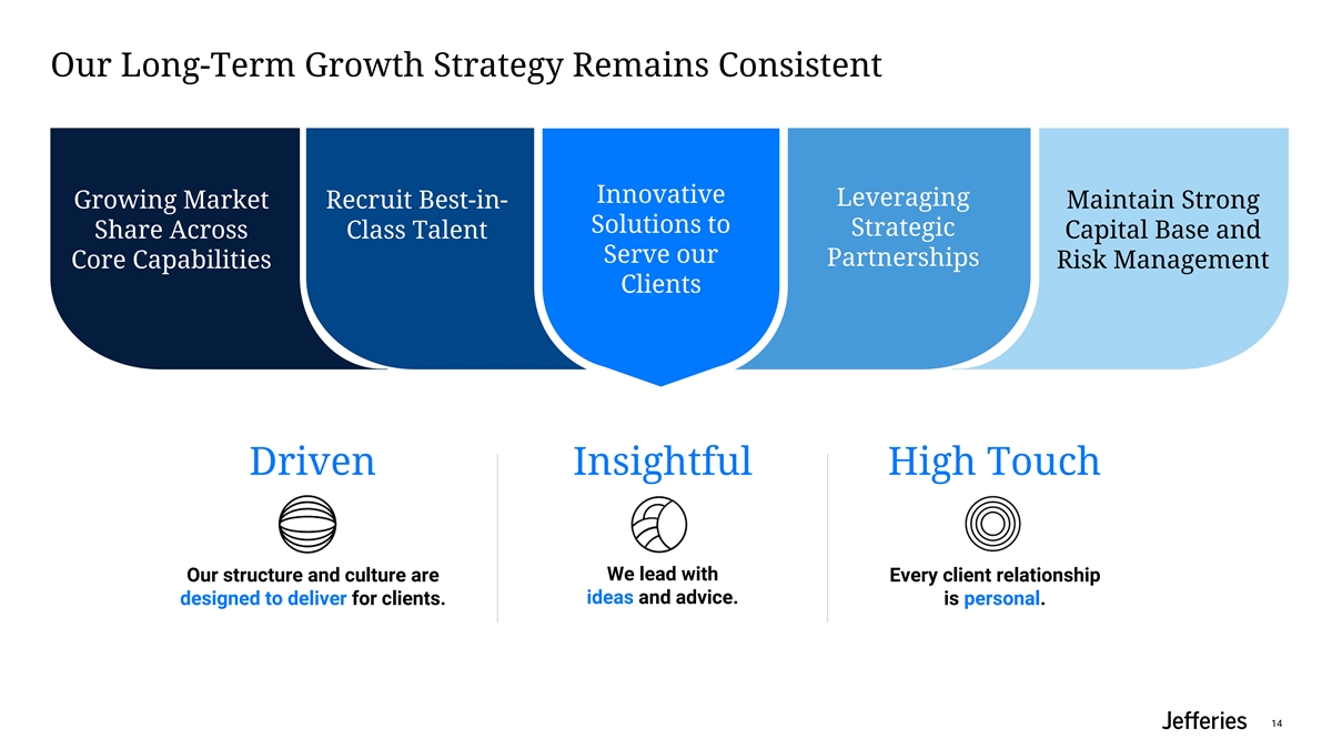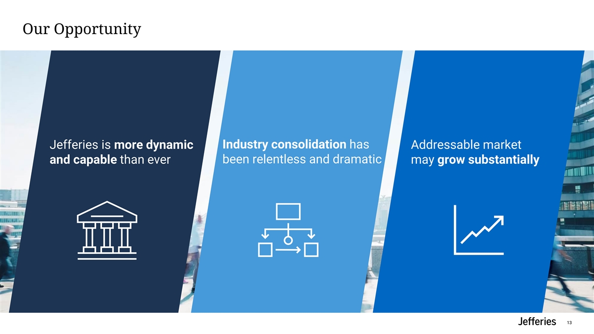 Our Opportunity Industry consolidation has Jefferies is more dynamic Addressable market been relentless and dramatic and capable than ever may grow substantially 13