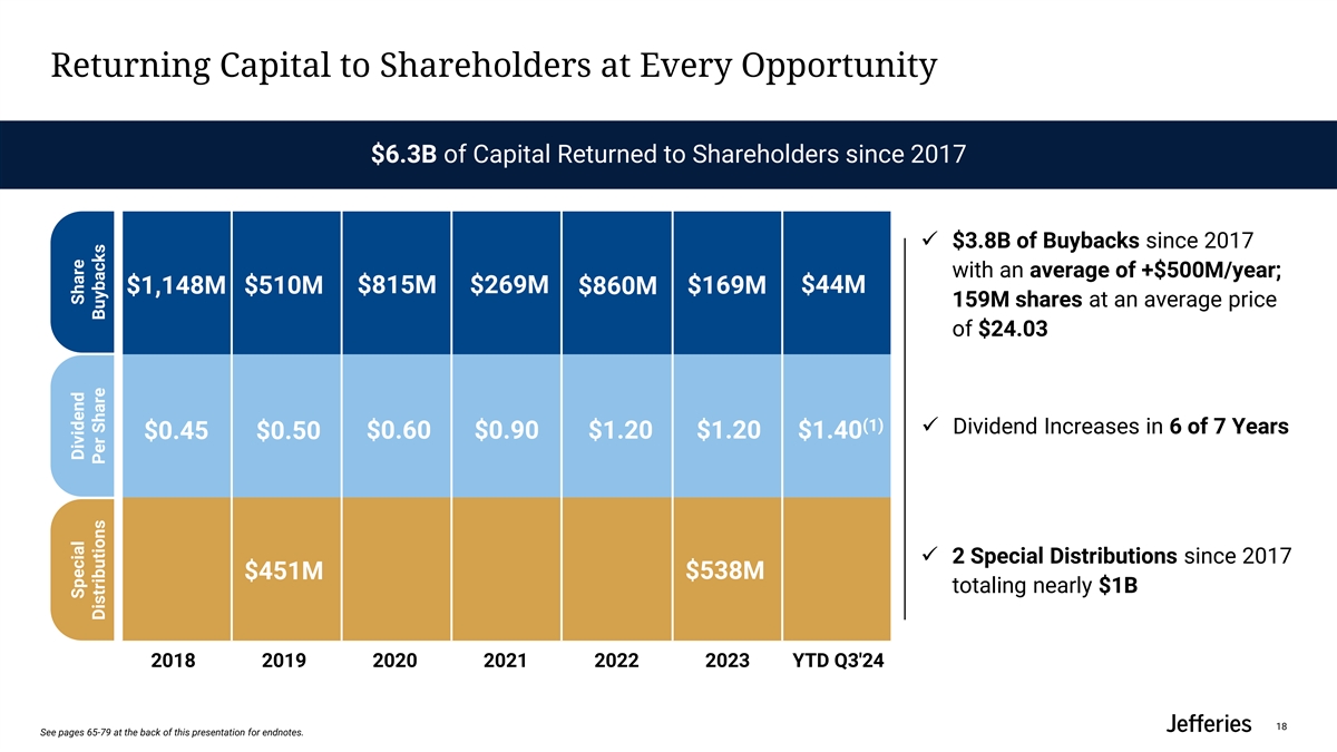 Executing Our Growth Strategy Net Revenues $5.1B YTD Q3’24 $6.3B LTM Q3’24 p+45% vs. PY p+61% vs. 2019 Net Earnings $492M YTD Q3’24 $563M LTM Q3’24 p+156% vs. PY p+35% vs. 2019 (1) Adjusted ROTE 10% YTD Q3’24 10% YTD Q3’24 p+640bps vs. PY p+410bps vs. 2019 17 See pages 65-79 at the back of this presentation for endnotes.