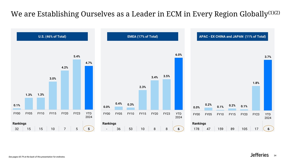 (1)(2) We are Establishing Ourselves as a Leader in ECM in Every Region Globally U.S. (46% of Total) EMEA (17% of Total) APAC - EX CHINA and JAPAN (11% of Total) 6.0% 5.4% 3.7% 4.7% 4.2% 3.5% 3.4% 3.0% 1.8% 2.3% 1.3% 1.3% 0.4% 0.3% 0.2% 0.1% 0.2% 0.1% 0.0% 0.1% 0.0% FY00 FY05 FY10 FY15 FY20 FY23 YTD FY00 FY05 FY10 FY15 FY20 FY23 YTD FY00 FY05 FY10 FY15 FY20 FY23 YTD 2024 2024 2024 Rankings Rankings Rankings 32 15 15 10 7 5 5 - 36 53 10 8 8 6 178 47 159 89 105 17 6 34 See pages 65-79 at the back of this presentation for endnotes.