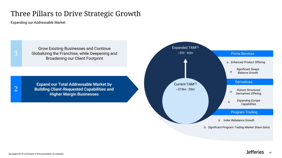 Three Pillars to Drive Strategic Growth Expanding our Addressable Market (1) Expanded TAM Grow Existing Businesses and Continue ~$50 - 60bn Globalizing the Franchise, while Deepening and Prime Services 1 Broadening our Client Footprint Enhanced Product Offering Significant Swaps Balance Growth Derivatives (1) Current TAM Expand our Total Addressable Market by ~$15bn - 20bn Building Client-Requested Capabilities and Robust Structured 2 Derivatives Offering Higher Margin Businesses Expanding Europe Capabilities Program Trading Index Rebalance Growth Significant Program Trading Market Share Gains 42 See pages 65-79 at the back of this presentation for endnotes.