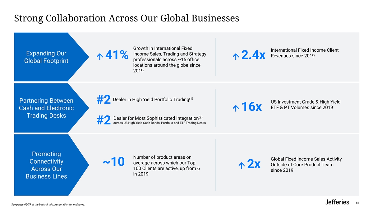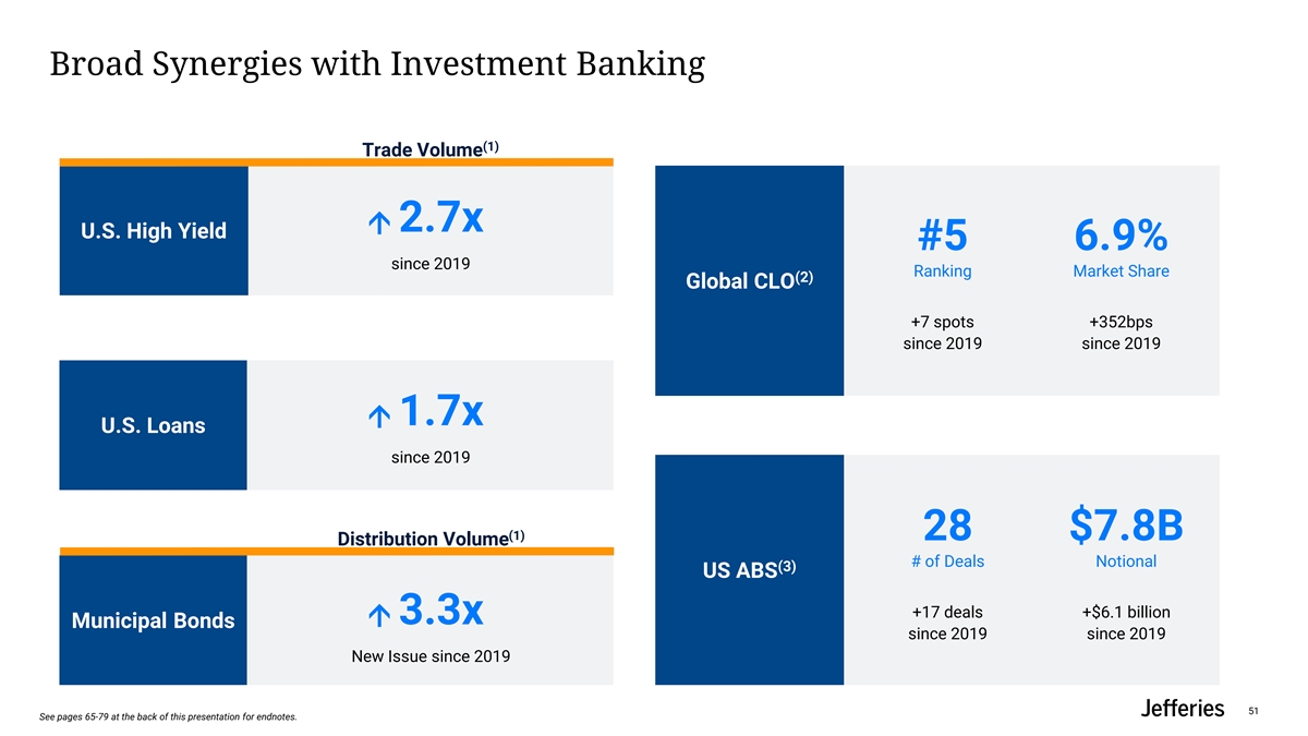 Broad Synergies with Investment Banking (1) Trade Volume á 2.7x U.S. High Yield #5 6.9% since 2019 Ranking Market Share (2) Global CLO +7 spots +352bps since 2019 since 2019 á 1.7x U.S. Loans since 2019 (1) 28 $7.8B Distribution Volume # of Deals Notional (3) US ABS +17 deals +$6.1 billion á 3.3x Municipal Bonds since 2019 since 2019 New Issue since 2019 51 See pages 65-79 at the back of this presentation for endnotes.