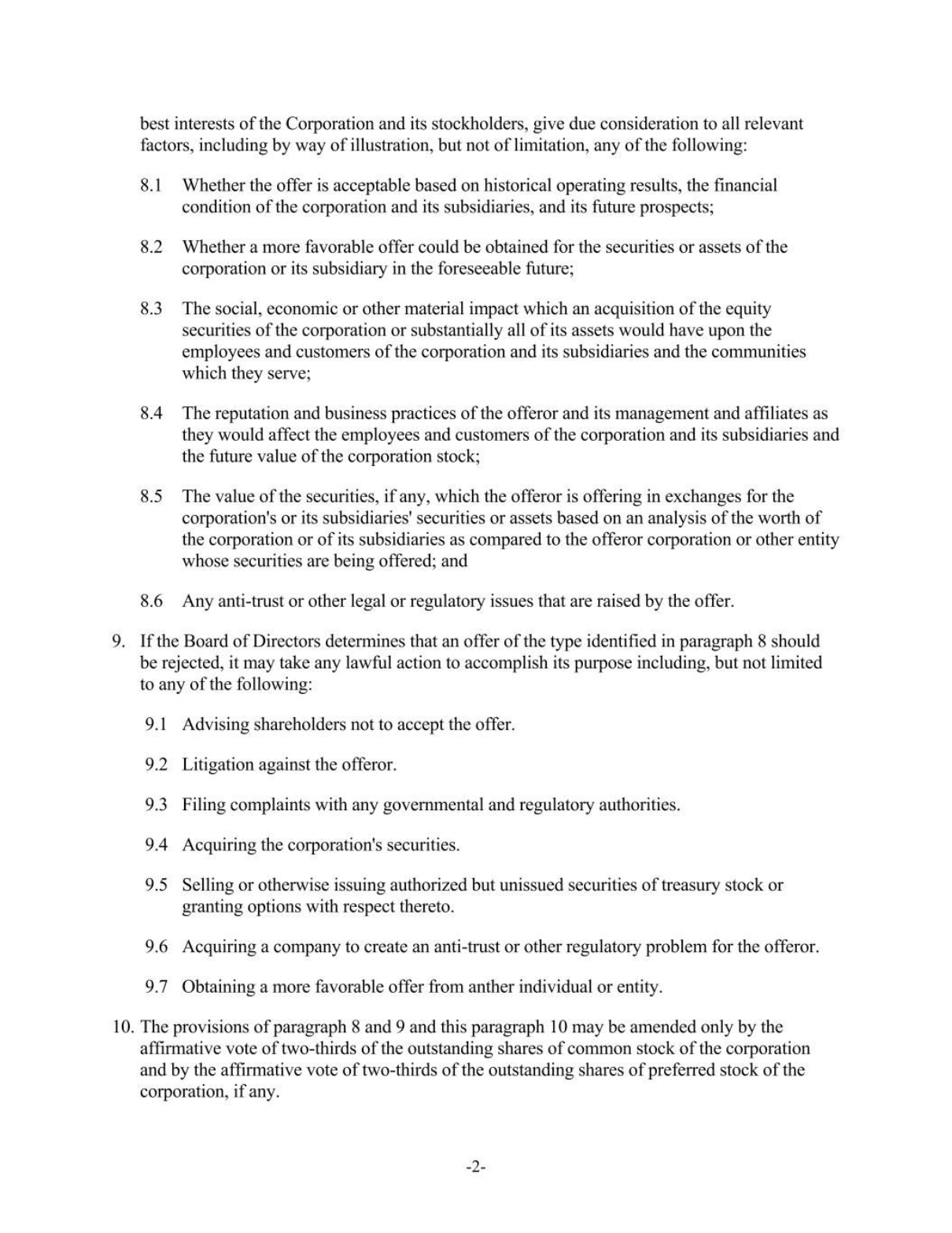 (ii) | the articles of incorporation or bylaws, or |