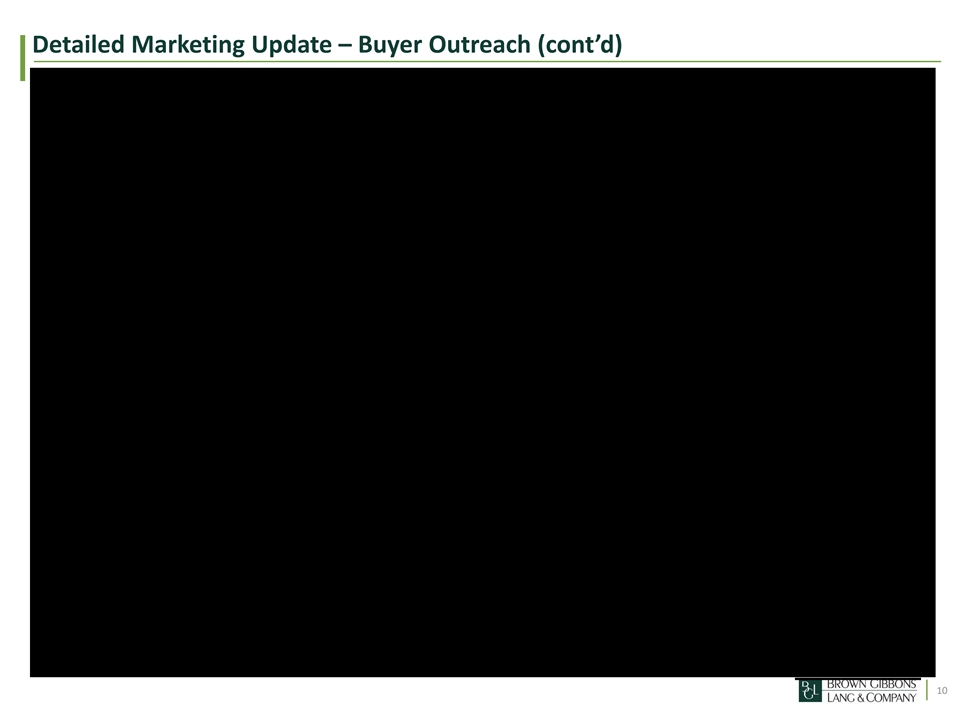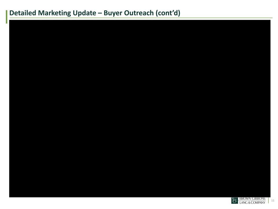 Detailed Marketing Update – Buyer Outreach (cont’d) 10