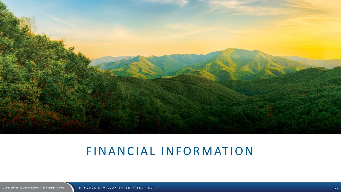 © 2024 Babcock & Wilcox Enterprises, Inc. All rights reserved. B A B C O C K & W I L C O X E N T E R P R I S E S , I N C . 21 F I N A N C I A L I N F O R M AT I O N