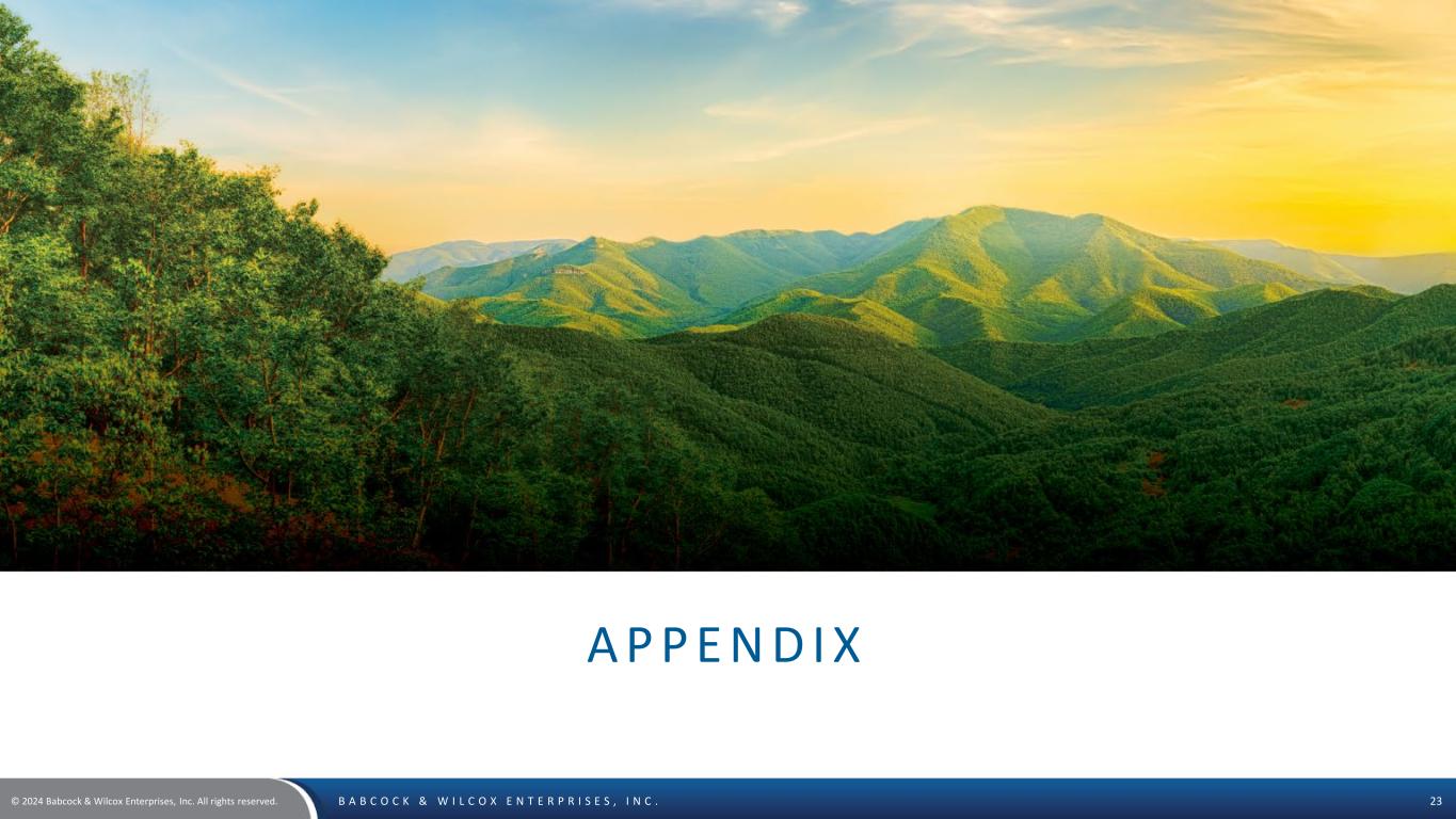 © 2024 Babcock & Wilcox Enterprises, Inc. All rights reserved. B A B C O C K & W I L C O X E N T E R P R I S E S , I N C . 23 A P P E N D I X