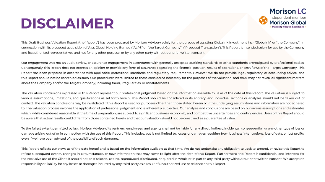 It is anticipated that upon completion of the Business Combination, assuming no redemptions, Globalink’s public stockholders would retain an ownership interest of approximately 0.2% in PubCo, Globalink public rights holders would retain an ownership interest of approximately 0.8% in PubCo for a total ownership interest held by Globalink’s public stockholders of 0.8%, the PIPE Investors will own approximately 2.4% of PubCo, assuming the PIPE Investors will hold 4,020,000 PubCo ordinary shares, the Parent Representative and officers and directors of Globalink will retain an ownership interest of approximately 2.4% of PubCo, Public Gold Marketing Sdn. Bhd., a Malaysian private limited company and an affiliate of the Sponsor (“PGM”), the holder of 570,000 private units, which include an aggregate of 627,000 shares of Globalink common stock, will retain an ownership interest of approximately 0.4% of PubCo, IBDC Asia Sdn. Bhd., an advisory firm to Alps, will own approximately 0.9% of PubCo, representing finder’s fees payable in PubCo ordinary shares with value equal to 1% of the aggregate consideration for the Business Combination of US$1.6 billion, and the Alps Holdco’ shareholders will own approximately 93.8% of PubCo. These percentages are calculated based on a number of assumptions (described in the accompanying proxy statement/prospectus) and are subject to adjustment in accordance with the terms of the Merger Agreement. If the actual facts are different from these assumptions (which they are likely to be), the percentage ownership retained by the respective parties will be different. See “Frequently Used Terms — Share Calculations and Ownership Percentages” and “Unaudited Pro Forma Condensed Combined Financial Information and Notes.”