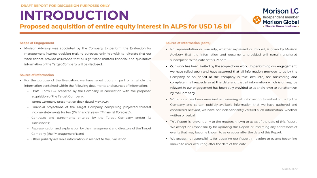 As a result of and upon the Closing, pursuant to the terms of the Merger Agreement, all of the outstanding shares of Alps Holdco will be cancelled in exchange for the right to receive PubCo ordinary shares equal to the Conversion Ratio (as defined in the Merger Agreement). The aggregate consideration for the Business Combination is US$1.6 billion, payable at the Closing in the form of newly issued PubCo ordinary shares, at $10.00 per share, of US$0.0001 par value each (the “Merger Consideration Shares”). The Merger Consideration Shares will be allocated pro rata with each shareholder of Alps Holdco receiving a number of PubCo ordinary shares determined in accordance with the terms of the Merger Agreement. Moreover, Alps Holdco’s shareholders will be eligible to receive up to an aggregate of 48,000,000 additional ordinary shares (the “Earnout Shares”) of the Combined Company upon the completion of certain milestones relating to the consolidated revenue of the Combined Company for five fiscal years following the Closing in accordance with the terms set forth in the Merger Agreement.