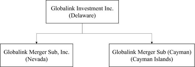 Globalink is a Delaware company incorporated as a blank check company for the purpose of effecting a merger, share exchange, asset acquisition, share purchase, reorganization or similar business combination with one or more businesses or entities. The business combination will be completed through a two-step process consisting of the Redomestication Merger (as defined below) and the Acquisition Merger (as defined below). The Redomestication Merger and the Acquisition Merger are collectively referred to herein as the “Business Combination.”