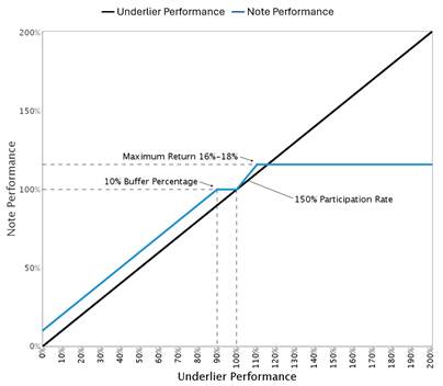 | · | Contingent Return of Principal at Maturity — If the Final Underlier Value is less than or equal to the Initial Underlier Value, but is greater than or equal to the Buffer Value, at maturity, investors will receive the principal amount of their Notes. If the Final Underlier Value is less than the Buffer Value, at maturity, investors will lose 1% of the principal amount of their Notes for each 1% that the Final Underlier Value is less than the Initial Underlier Value in excess of the Buffer Percentage. |
