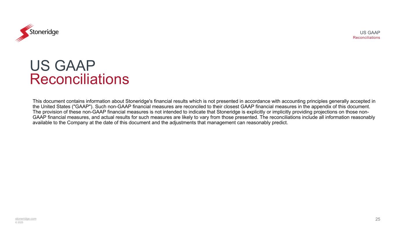 stoneridge.com © 2025 Reconciliations to US GAAP