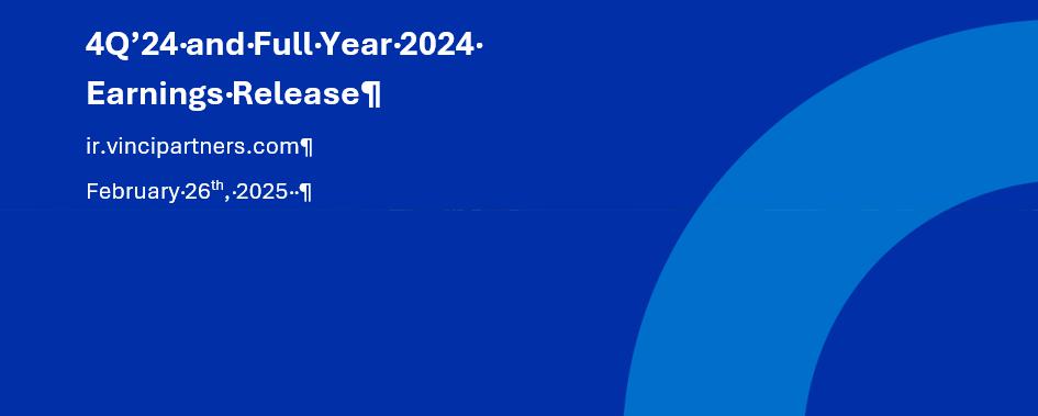 Alessandro Horta, Chief Executive Officer, stated, “The year of 2024 was a transformational one for our firm, marking the beginning of a new chapter with the successful completion of our combination with Compass, alongside two other strategic acquisitions, MAV and Lacan. These milestones have significantly expanded our platform, positioning Vinci Compass as the premier alternative investment and global solutions provider in Latin America. We have been, consistently since our IPO, thriving from the gradual shift to alternatives within the local institutional community in Brazil, and we still have plenty room to grow. As we enter the new year, we are stepping into an environment full of opportunities to further expand our presence across Latin America and strengthen our fundraising efforts, both cross-border and on a local-to-local basis. Our extensive footprint allows us to effectively drive cross-selling opportunities across the region while leveraging the unique advantages of global markets. This geographic diversity enables us to offer tailored solutions to our clients, addressing their investment needs on a local, regional, and global scale.”