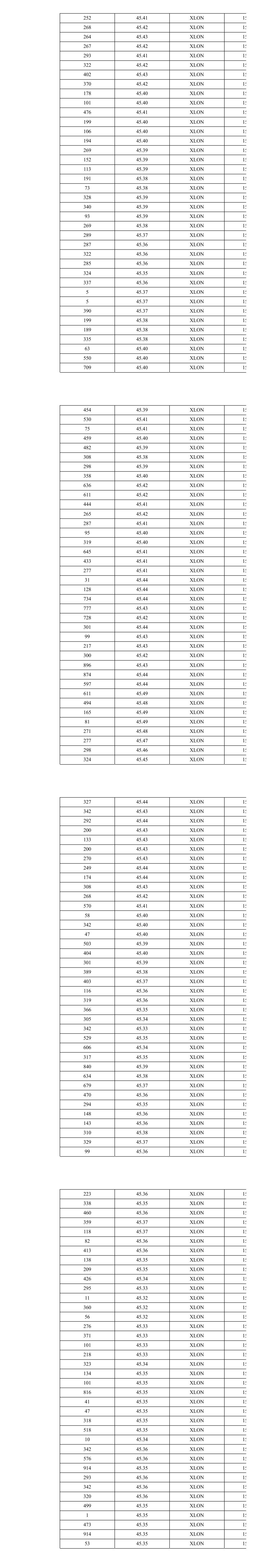 252 45.41 XLON 15 268 45.42 XLON 15 264 45.43 XLON 15 267 45.42 XLON 15 293 45.41 XLON 15 322 45.42 XLON 15 402 45.43 XLON 15 370 45.42 XLON 15 178 45.40 XLON 15 101 45.40 XLON 15 476 45.41 XLON 15 199 45.40 XLON 15 106 45.40 XLON 15 194 45.40 XLON 15 269 45.39 XLON 15 152 45.39 XLON 15 113 45.39 XLON 15 191 45.38 XLON 15 73 45.38 XLON 15 328 45.39 XLON 15 340 45.39 XLON 15 93 45.39 XLON 15 269 45.38 XLON 15 289 45.37 XLON 15 287 45.36 XLON 15 322 45.36 XLON 15 285 45.36 XLON 15 324 45.35 XLON 15 337 45.36 XLON 15 5 45.37 XLON 15 5 45.37 XLON 15 390 45.37 XLON 15 199 45.38 XLON 15 189 45.38 XLON 15 335 45.38 XLON 15 63 45.40 XLON 15 550 45.40 XLON 15 709 45.40 XLON 15 454 45.39 XLON 15 530 45.41 XLON 15 75 45.41 XLON 15 459 45.40 XLON 15 482 45.39 XLON 15 308 45.38 XLON 15 298 45.39 XLON 15 358 45.40 XLON 15 636 45.42 XLON 15 611 45.42 XLON 15 444 45.41 XLON 15 265 45.42 XLON 15 287 45.41 XLON 15 95 45.40 XLON 15 319 45.40 XLON 15 645 45.41 XLON 15 433 45.41 XLON 15 277 45.41 XLON 15 31 45.44 XLON 15 128 45.44 XLON 15 734 45.44 XLON 15 777 45.43 XLON 15 728 45.42 XLON 15 301 45.44 XLON 15 99 45.43 XLON 15 217 45.43 XLON 15 300 45.42 XLON 15 896 45.43 XLON 15 874 45.44 XLON 15 597 45.44 XLON 15 611 45.49 XLON 15 494 45.48 XLON 15 165 45.49 XLON 15 81 45.49 XLON 15 271 45.48 XLON 15 277 45.47 XLON 15 298 45.46 XLON 15 324 45.45 XLON 15 327 45.44 XLON 15 342 45.43 XLON 15 292 45.44 XLON 15 200 45.43 XLON 15 133 45.43 XLON 15 200 45.43 XLON 15 270 45.43 XLON 15 249 45.44 XLON 15 174 45.44 XLON 15 308 45.43 XLON 15 268 45.42 XLON 15 570 45.41 XLON 15 58 45.40 XLON 15 342 45.40 XLON 15 47 45.40 XLON 15 503 45.39 XLON 15 404 45.40 XLON 15 301 45.39 XLON 15 389 45.38 XLON 15 403 45.37 XLON 15 116 45.36 XLON 15 319 45.36 XLON 15 366 45.35 XLON 15 305 45.34 XLON 15 342 45.33 XLON 15 529 45.35 XLON 15 606 45.34 XLON 15 317 45.35 XLON 15 840 45.39 XLON 15 634 45.38 XLON 15 679 45.37 XLON 15 470 45.36 XLON 15 294 45.35 XLON 15 148 45.36 XLON 15 143 45.36 XLON 15 310 45.38 XLON 15 329 45.37 XLON 15 99 45.36 XLON 15 223 45.36 XLON 15 338 45.35 XLON 15 460 45.36 XLON 15 359 45.37 XLON 15 118 45.37 XLON 15 82 45.36 XLON 15 413 45.36 XLON 15 138 45.35 XLON 15 209 45.35 XLON 15 426 45.34 XLON 15 295 45.33 XLON 15 11 45.32 XLON 15 360 45.32 XLON 15 56 45.32 XLON 15 276 45.33 XLON 15 371 45.33 XLON 15 101 45.33 XLON 15 218 45.33 XLON 15 323 45.34 XLON 15 134 45.35 XLON 15 101 45.35 XLON 15 816 45.35 XLON 15 41 45.35 XLON 15 47 45.35 XLON 15 318 45.35 XLON 15 518 45.35 XLON 15 10 45.34 XLON 15 342 45.36 XLON 15 576 45.36 XLON 15 914 45.35 XLON 15 293 45.36 XLON 15 342 45.36 XLON 15 320 45.36 XLON 15 499 45.35 XLON 15 1 45.35 XLON 15 473 45.35 XLON 15 914 45.35 XLON 15 53 45.35 XLON 15
