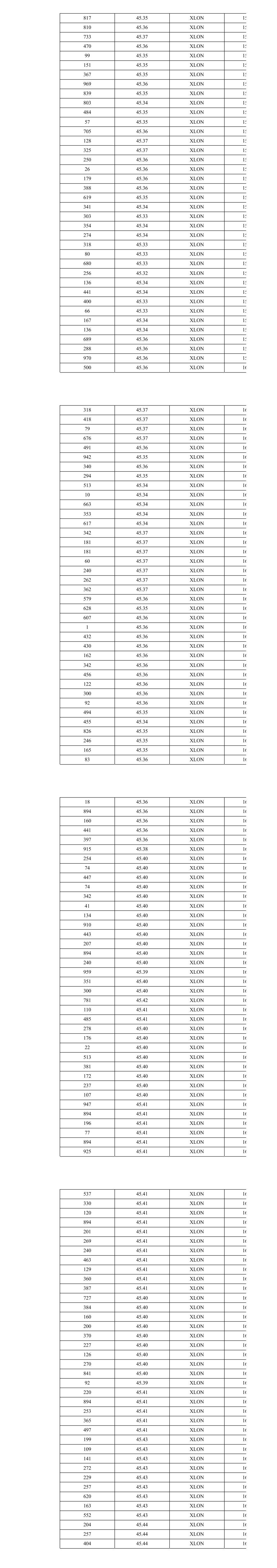 817 45.35 XLON 15 810 45.36 XLON 15 733 45.37 XLON 15 470 45.36 XLON 15 99 45.35 XLON 15 151 45.35 XLON 15 367 45.35 XLON 15 969 45.36 XLON 15 839 45.35 XLON 15 803 45.34 XLON 15 484 45.35 XLON 15 57 45.35 XLON 15 705 45.36 XLON 15 128 45.37 XLON 15 325 45.37 XLON 15 250 45.36 XLON 15 26 45.36 XLON 15 179 45.36 XLON 15 388 45.36 XLON 15 619 45.35 XLON 15 341 45.34 XLON 15 303 45.33 XLON 15 354 45.34 XLON 15 274 45.34 XLON 15 318 45.33 XLON 15 80 45.33 XLON 15 680 45.33 XLON 15 256 45.32 XLON 15 136 45.34 XLON 15 441 45.34 XLON 15 400 45.33 XLON 15 66 45.33 XLON 15 167 45.34 XLON 15 136 45.34 XLON 15 689 45.36 XLON 15 288 45.36 XLON 15 970 45.36 XLON 15 500 45.36 XLON 16 318 45.37 XLON 16 418 45.37 XLON 16 79 45.37 XLON 16 676 45.37 XLON 16 491 45.36 XLON 16 942 45.35 XLON 16 340 45.36 XLON 16 294 45.35 XLON 16 513 45.34 XLON 16 10 45.34 XLON 16 663 45.34 XLON 16 353 45.34 XLON 16 617 45.34 XLON 16 342 45.37 XLON 16 181 45.37 XLON 16 181 45.37 XLON 16 60 45.37 XLON 16 240 45.37 XLON 16 262 45.37 XLON 16 362 45.37 XLON 16 579 45.36 XLON 16 628 45.35 XLON 16 607 45.36 XLON 16 1 45.36 XLON 16 432 45.36 XLON 16 430 45.36 XLON 16 162 45.36 XLON 16 342 45.36 XLON 16 456 45.36 XLON 16 122 45.36 XLON 16 300 45.36 XLON 16 92 45.36 XLON 16 494 45.35 XLON 16 455 45.34 XLON 16 826 45.35 XLON 16 246 45.35 XLON 16 165 45.35 XLON 16 83 45.36 XLON 16 18 45.36 XLON 16 894 45.36 XLON 16 160 45.36 XLON 16 441 45.36 XLON 16 397 45.36 XLON 16 915 45.38 XLON 16 254 45.40 XLON 16 74 45.40 XLON 16 447 45.40 XLON 16 74 45.40 XLON 16 342 45.40 XLON 16 41 45.40 XLON 16 134 45.40 XLON 16 910 45.40 XLON 16 443 45.40 XLON 16 207 45.40 XLON 16 894 45.40 XLON 16 240 45.40 XLON 16 959 45.39 XLON 16 351 45.40 XLON 16 300 45.40 XLON 16 781 45.42 XLON 16 110 45.41 XLON 16 485 45.41 XLON 16 278 45.40 XLON 16 176 45.40 XLON 16 22 45.40 XLON 16 513 45.40 XLON 16 381 45.40 XLON 16 172 45.40 XLON 16 237 45.40 XLON 16 107 45.40 XLON 16 947 45.41 XLON 16 894 45.41 XLON 16 196 45.41 XLON 16 77 45.41 XLON 16 894 45.41 XLON 16 925 45.41 XLON 16 537 45.41 XLON 16 330 45.41 XLON 16 120 45.41 XLON 16 894 45.41 XLON 16 201 45.41 XLON 16 269 45.41 XLON 16 240 45.41 XLON 16 463 45.41 XLON 16 129 45.41 XLON 16 360 45.41 XLON 16 387 45.41 XLON 16 727 45.40 XLON 16 384 45.40 XLON 16 160 45.40 XLON 16 200 45.40 XLON 16 370 45.40 XLON 16 227 45.40 XLON 16 126 45.40 XLON 16 270 45.40 XLON 16 841 45.40 XLON 16 92 45.39 XLON 16 220 45.41 XLON 16 894 45.41 XLON 16 253 45.41 XLON 16 365 45.41 XLON 16 497 45.41 XLON 16 199 45.43 XLON 16 109 45.43 XLON 16 141 45.43 XLON 16 272 45.43 XLON 16 229 45.43 XLON 16 257 45.43 XLON 16 620 45.43 XLON 16 163 45.43 XLON 16 552 45.43 XLON 16 204 45.44 XLON 16 257 45.44 XLON 16 404 45.44 XLON 16