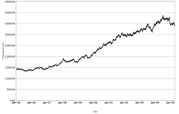 The following graph sets forth hypothetical back-tested and historical closing values of the Underlier for the period from January 1, 2015 to April 17, 2025. The Underlier was launched on February 23, 2024. Accordingly, all closing values for periods prior to the launch date are based on hypothetical back-tested information, utilizing the same methodology as is currently in place for the Underlier. The hypothetical back-tested performance of the Underlier is based on criteria that have been applied retroactively with the benefit of hindsight; these criteria cannot account for all financial risk that may affect the actual performance of the Underlier in the future. The future performance of the Underlier may vary significantly from the hypothetical back-tested and historical performance illustrated in the graph below.