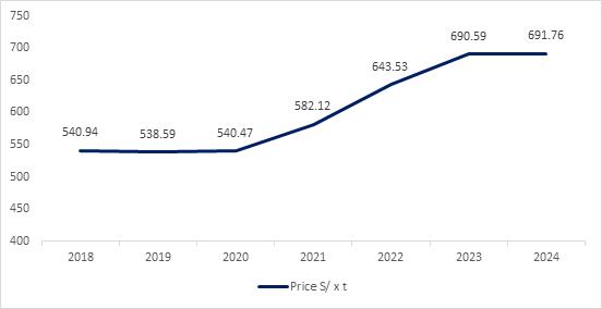 Cement sales at the Piura plant are, on average, S/ 895 million per year (for the period 2025-2054), and the average EBITDA margin for the same period is 37%.