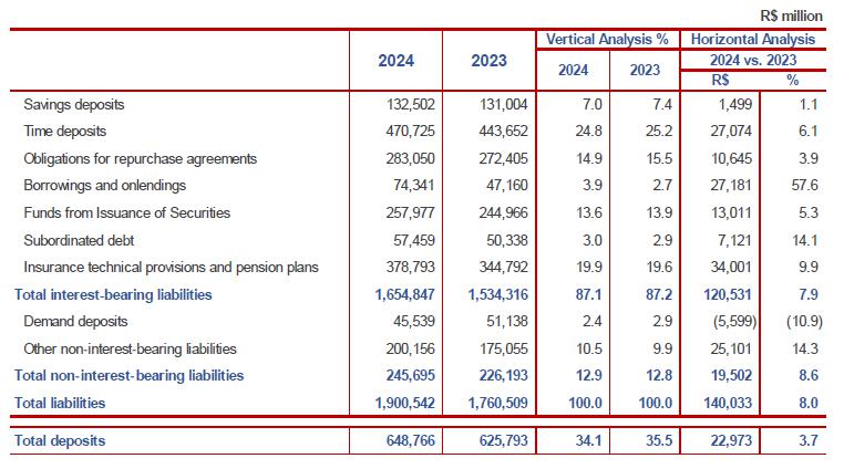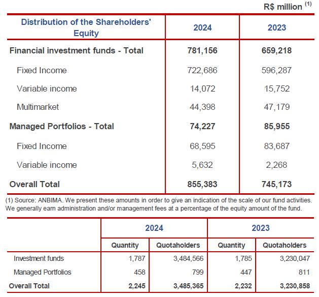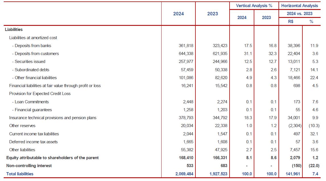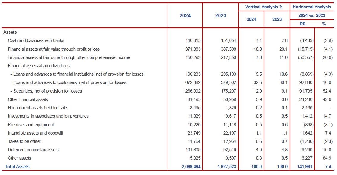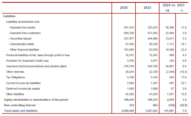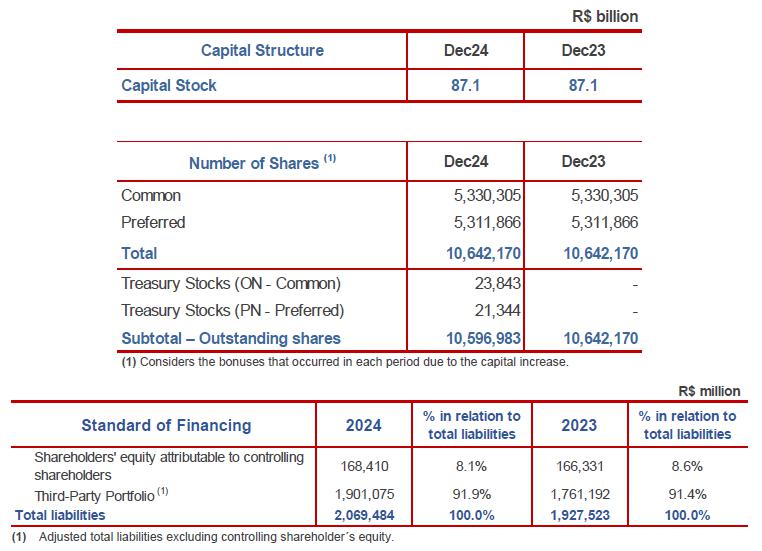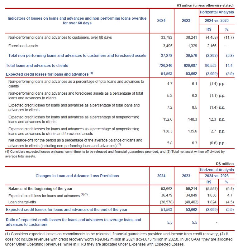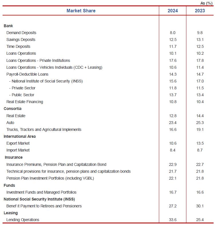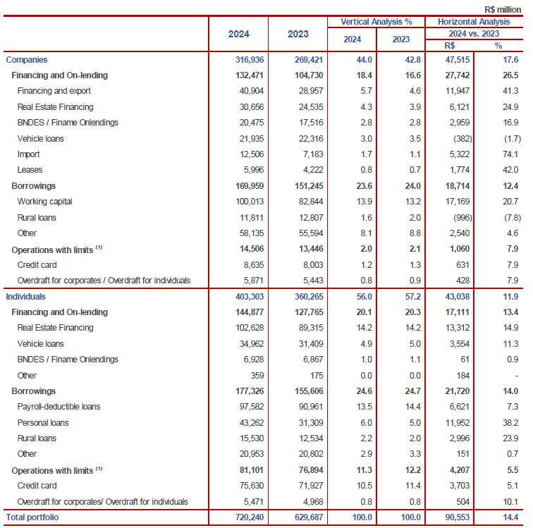 The vehicle loans portfolio grew in 2024, due to the optimization of concession policies, economic recovery and improvements in procurement processes, maintaining the position among the main portfolios of the Brazilian market.