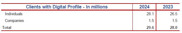 As of December 31, 2024, we had 38.2 million account holders (clients who have a deposit account which is available for use), of which 36.4 million of them being individuals and 1.8 million being companies. As of the same date, we had 66.6 million savings accounts.