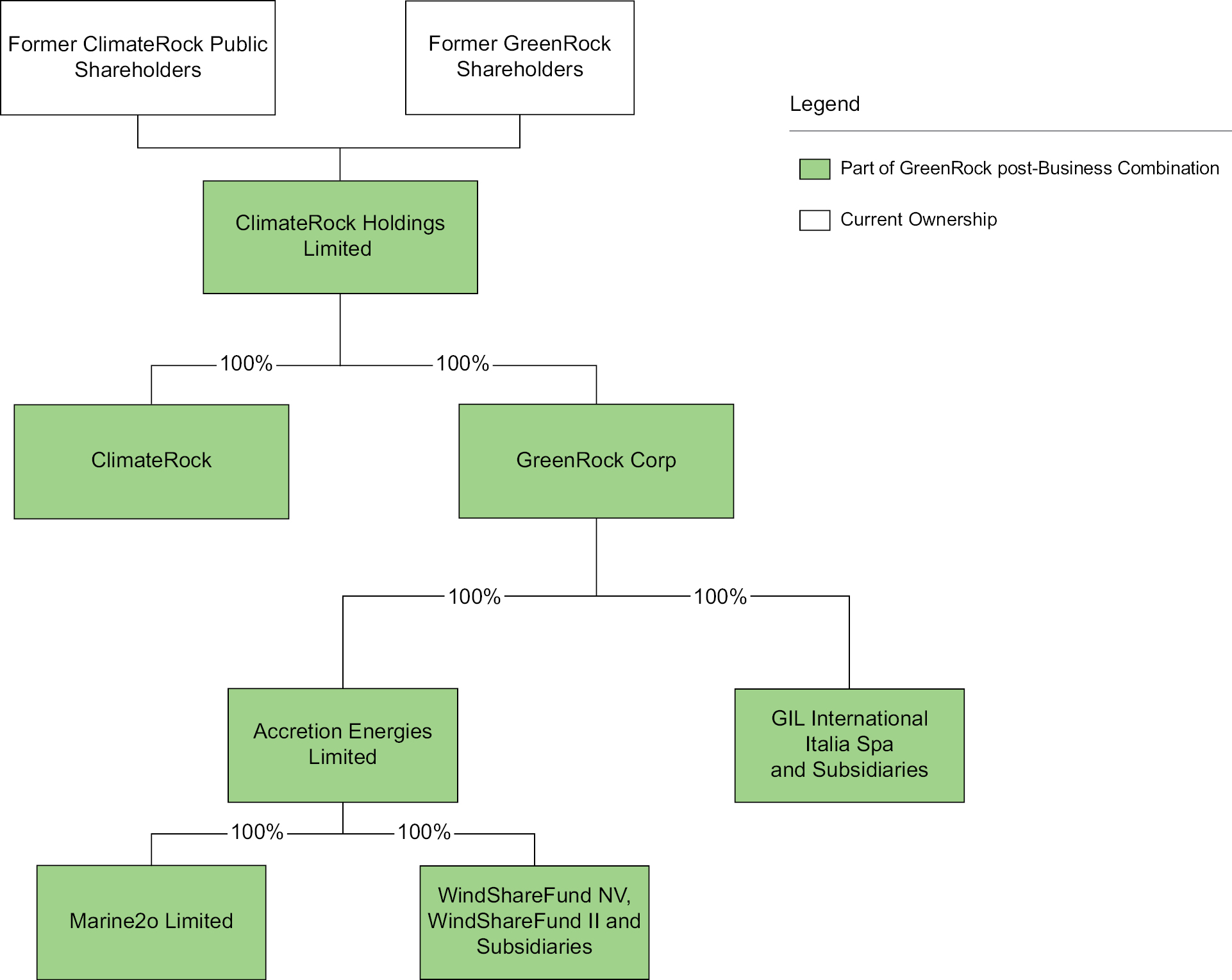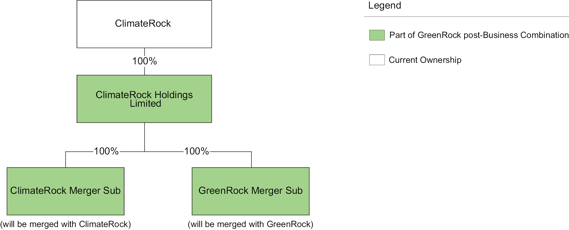 Pursuant to the Business Combination Agreement, (a) SPAC Merger Sub will merge with and into ClimateRock, with ClimateRock continuing as the surviving company (the “SPAC Merger”), as a result of which, (i) ClimateRock shall become a wholly-owned subsidiary of Pubco, and (ii) each issued and outstanding security of ClimateRock immediately prior to the effective time of the SPAC Merger (the “SPAC Merger Effective Time”) shall no longer be outstanding and shall automatically be cancelled in exchange for the issuance to the holder thereof of a substantially equivalent security of Pubco or, in the case of ClimateRock’s outstanding rights, will be automatically converted into Pubco Class A Ordinary Shares (as defined below), and (b) Company Merger Sub will merge with and into GreenRock, with GreenRock continuing as the surviving company (the “Company Merger” and together with the SPAC Merger, the “Mergers”), as a result of which, (i) GreenRock shall become a wholly-owned subsidiary of Pubco, and (ii) each issued and outstanding security of GreenRock immediately prior to the effective time of the Company Merger (the “Company Merger Effective Time”) shall no longer be outstanding and shall automatically be cancelled, in exchange for the issuance to the holder thereof of a substantially equivalent security of Pubco (the Mergers together with the other transactions contemplated by the Business Combination Agreement and other ancillary documents, the “Business Combination”).
