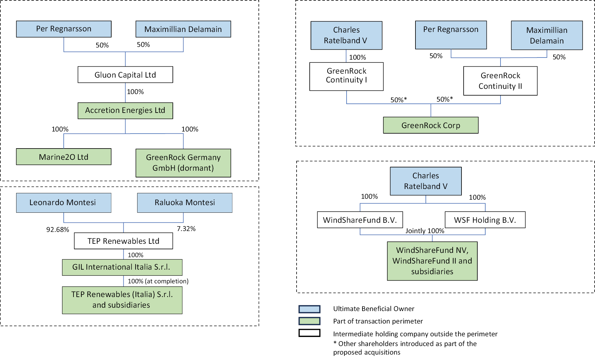 • Charles Ratelband V is Chairman of ClimateRock and a director of GreenRock.