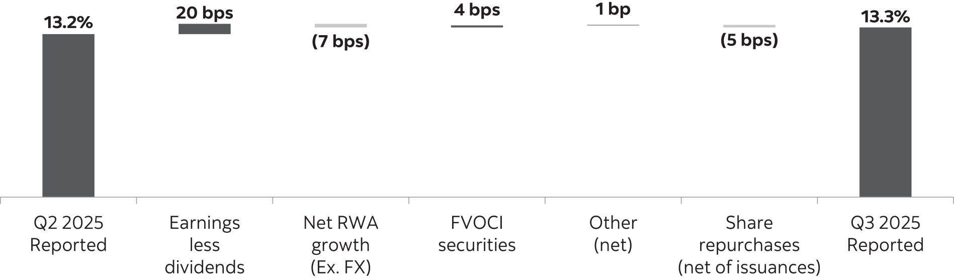 Quarterly Report to Shareholders Scotiabank reports third quarter results TORONTO, August 26, 2025 – Adjusted net income (1) for the third quarter was $2,518 million and adjusted diluted EPS(1) was $1.88, up from $1.63 last year. Adjusted return on equity(1) was 12.4% compared to 11.3% a year ago.“I want to thank all Scotiabankers for delivering a very strong quarter as we continue to execute on our strategy,” said Scott Thomson, President and Chief Executive Officer of Scotiabank. “We reported improving revenue growth which helped drive another quarter of positive operating leverage and pushed our return on equity meaningfully higher compared to the prior year. We did this all while maintaining a strong balance sheet and buying back shares.” Canadian Banking delivered adjusted earnings (1) of $959 million, up 56% compared to the prior quarter and down 2% compared to the prior year. The continued focus on personal demand deposits contributed to quarter-over-quarter margin expansion.International Banking generated adjusted earnings (1) of $716 million, up 7% year-over-year. Solid revenue generation and strong expense management resulted in another quarter of positive operating leverage reflecting the continued impact of productivity initiatives. Key measures of profitability also improved year-over-year.Global Wealth Management adjusted earnings (1) were $427 million, up 13% year-over-year driven by strong revenue growth from higher mutual fund fees, brokerage revenues, and net interest income across the Canadian and International wealth businesses. Additionally, assets under management(2) of $407 billion grew 12% year-over-year.Global Banking and Markets reported earnings of $473 million, up 29% compared to the prior year. The results were supported by strong performance in our capital markets business as well as higher fee revenue. The Bank reported a Common Equity Tier 1 (CET1) capital ratio (3) of 13.3%.(1) Refer to Non-GAAP Measures section starting on page 5.(2) Refer to Glossary on page 57 for the description of the measure.(3) The regulatory capital ratios are based on Basel III requirements as determined in accordance with OSFI Guideline – Capital Adequacy Requirements (November 2023).![]() |