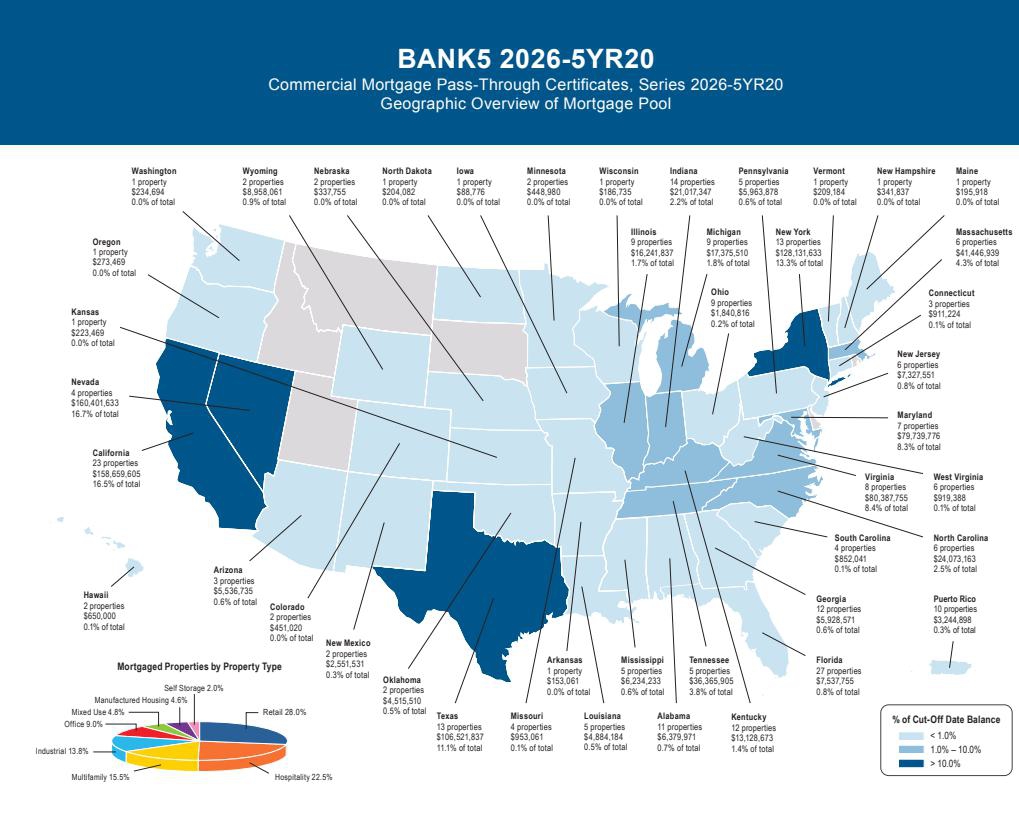 Banc of America Merrill Lynch Commercial Mortgage Inc. is offering certain classes of the Commercial Mortgage Pass-Through Certificates, Series 2026-5YR20 consisting of the certificate classes identified in the table below. The certificates being offered by this prospectus (and the non-offered Class X-D, Class X-E, Class D, Class E, Class F-RR, Class G-RR, Class V and Class R certificates and the VRR Interest) represent the beneficial ownership interests in the issuing entity, which will be a New York common law trust named BANK5 2026-5YR20. The assets of the issuing entity will primarily consist of a pool of fixed rate commercial mortgage loans, which are generally the sole source of payments on the certificates and the VRR Interest. Credit enhancement will be provided solely by certain classes of subordinate certificates that will be subordinate to certain classes of senior certificates as described under “Description of the Certificates—Subordination; Allocation of Realized Losses”. Each class of certificates and the VRR Interest will be entitled to receive monthly distributions of interest and/or principal on the 4th business day following the 11th day of each month (or if the 11th day is not a business day, the next business day), commencing in March 2026. The rated final distribution date for the certificates is the distribution date in February 2057.